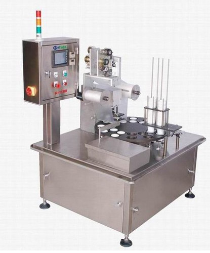 BG系列圓盤機功能齊全之最小型全自動化機種,佔用空間小。落杯無杯檢出充填電眼校正封膜位置印字封口&杯蓋裁切成品整列排出一貫作業。傳統式操作面板,簡單易懂。封口模獨立溫控回授控制。電眼自動追蹤校正封口位置,薄膜印刷對位精確。全機採用不銹鋼及鋁合金制作,堅固平穩,永不生銹。充填定量精確,儲料桶液位控制自動供料。CIP自動清洗料桶及充填管路。全部管路符合食品級衛生規范。無杯檢出自動停機,補入自動啟動。成品自動整列輸出。